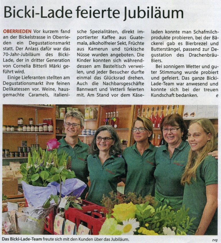 Lebensmittelgeschäft Bicki Lade in Oberrieden feiert 70jähriges Jubiläum